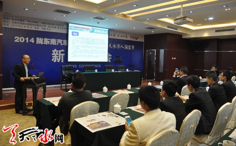 天天天水网讯【记者 黄虹】9月25日,“2014年陇东南汽车博览会(天水站)暨首届天水万人淘宝节”媒体推介会在天水皇城国际大酒店盛大启动。来自天水、兰州、西安等地的汽车、房产、金融、服装、食品、家居、电器等诸多行业的近百位相关负责人参加了此次新闻发布会。