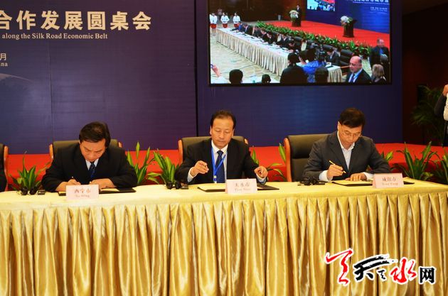 会上,西安市、天水市、乌鲁木齐市、西宁市、伊宁市、嘉峪关市、张掖市、固原市、咸阳市、宝鸡市,与法国波城市、瑞典吕勒欧市、以色列塔玛市、意大利波蒂齐市、意大利卡塞塔市、韩国晋州市、美国堪萨斯市、意大利埃尔科拉诺市等国外城市,就进一步深化相互间的合作和发展签署《丝绸之路经济带城市深化务实合作备忘录》。各个城市一致同意,将在友好自愿的基础上,逐步建立定期在不同城市举办“丝绸之路经济带城市圆桌会”的机制,打造合作发展交流平台,进一步扩大城市的国际影响力;进一步保护好丝绸之路文化遗产,中外城市合作举办文化遗产保护、城市建设规划等专项学术研讨会,编辑、出版、发行有关文化遗产保护的书籍和资料;进一步促进中外城市企业、商业界高层,教育、农业、体育、环保、卫生专家等专业人士的交流,取得产业及多领域合作成果;中外城市在友好自愿的基础上,定期相互交换城市发展相关资料、刊物,定期发布拟开展合作的相关信息,及时回应合作意向,确保交流深化合作信息交换畅通。