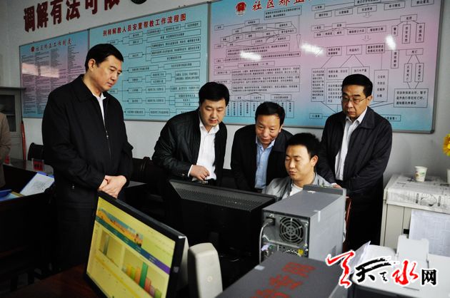 天天天水网讯【记者 马放】 9月25日,甘肃省委政法委副书记、省综治办主任牛纪南带领调研组来天水市,就网格化社会服务管理工作进行调研指导。中共天水市委常委、政法委书记赵卫东一同调研。