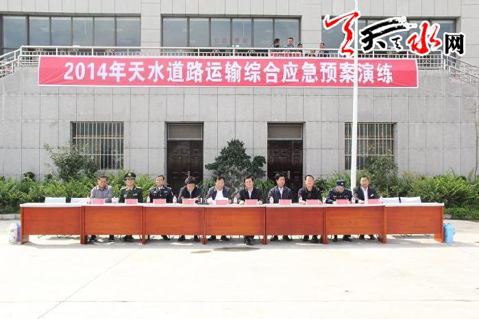 天天天水网讯(通讯员 郭彦龙)9月28日上午,2014年天水道路运输综合应急预案演练在羲通公交旅游集团举行。市委常委、政法委书记赵卫东,副市长雷鸣等领导出席演练活动,市政法委、市公安局、市消防支队、市交通运输局等单位领导全程观摩了演练,来自天嘉集团、羲通公交等单位共计600余人参加了演练活动。