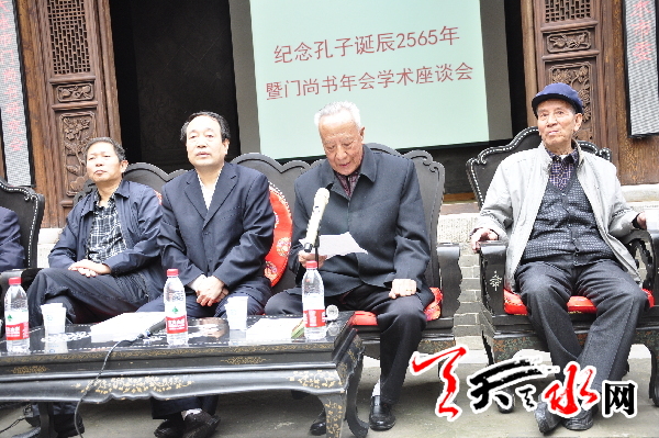 天天天水网讯【记者 赵晓玲】 9月28日是孔子诞辰2565周年纪念日。9月27日上午,由民盟天水市委主办的纪念孔子诞辰2565周年暨门尚书年会学术座谈会在秦州区南宅子隆重举行,天水文化界、教育界和学术界有关人士100余人以学术交流的形式纪念孔子。