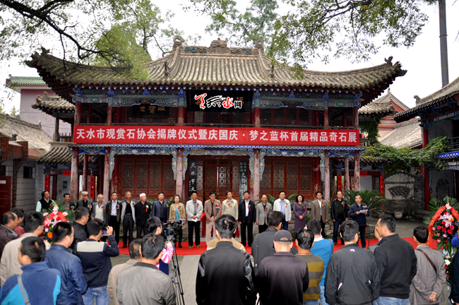 天天天水网讯【记者刘欣】10月9日,天水市观赏石协会揭牌仪式暨庆国庆·梦之蓝杯首届精品奇石展在市群艺馆举行,来自全市五县两区的400余方精品奇石共聚此次“石文化”盛宴,让天水市民大饱眼福。