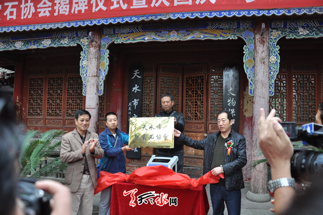 陕西省观赏石协会、青海省观赏石协会、广东省观赏石协会、云南省观赏石协会、浙江省观赏石协会、宝鸡市奇石协会、咸阳市观赏石协会、渭南市观赏石协会、西安市观赏石协会、汉中市观赏石协会、张掖市观赏石协会、酒泉市观赏石协会、白银市观赏石协会、内蒙古观赏石宝玉石协会、阿拉善左旗观赏石协会等单位为天水市观赏石协会揭牌暨首届精品奇石展表示祝贺。