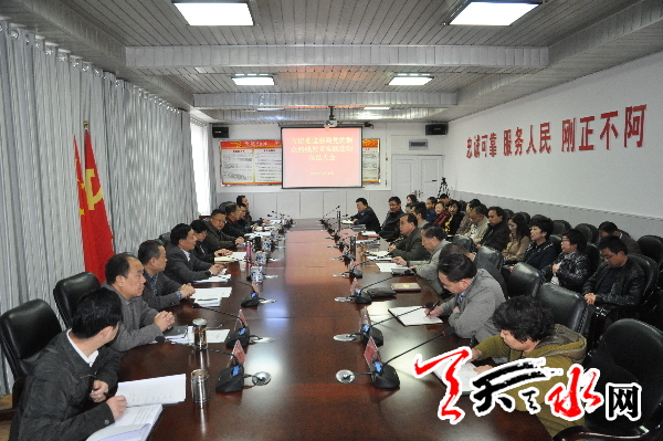天天天水网讯【记者 王晓馨】 10月24日下午,市政府办公室党组召开党的群众路线教育实践活动总结大会,市委第九督导组全体成员和市政府办公室及所属各单位全体党员干部职工参加会议。