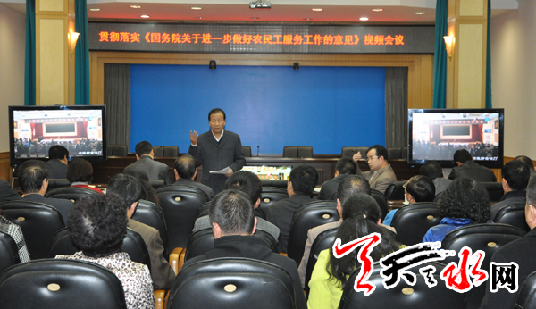 天天天水网讯【记者 王晓馨】 10月28日,国务院农民工工作领导小组关于贯彻落实农民工服务工作视频会议后,市委常委、常务副市长郭奇若主持召开会议,就如何贯彻落实好会议精神,做好全市农民工服务工作进行了安排部署。