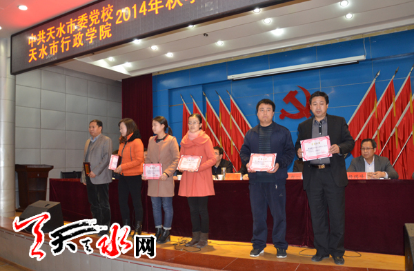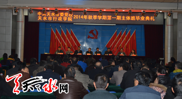 天天天水网讯【记者 王晓馨】 11月14日,天水市委党校、市行政学院举行2014年秋季学期第一期主体班毕业典礼,表彰奖励优秀学员、优秀学员干部、优秀课题。市委副书记、市政协主席、市委党校校长、市行政学院院长宋尚有出席毕业典礼并为学员颁发了毕业证书。
