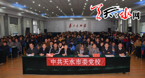 市委党校党委书记、副校长温钦虎在主持毕业典礼并希望各位学员要继续将学习习近平总书记系列重要讲话精神作为一项重要的政治任务长期坚持,通过读原著、学原文、悟原理,不断深化对党的理论创新成果的理解和把握,增强贯彻落实习近平总书记系列重要讲话精神的主动性和坚定性;要及时将教育学习培训中政治理念的坚定、理论素养的提升,全面体现为以马克思主义中国化的最新理论成果武装头脑,指导实践,体现在成为各行各业的模范和表率,在建设美丽天水的伟大实践中升华自己的人生价值。