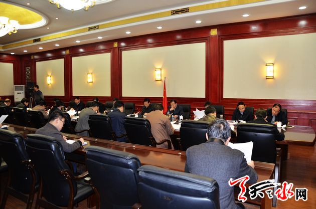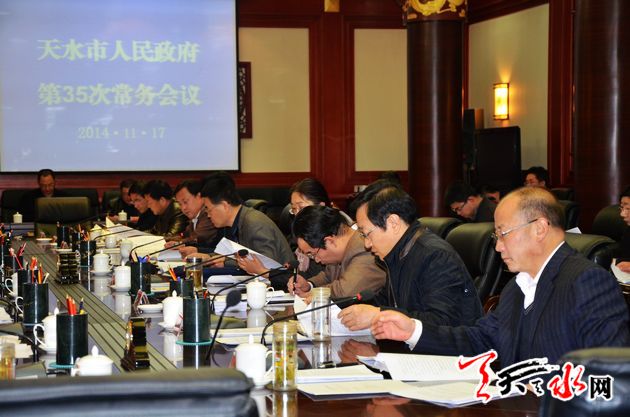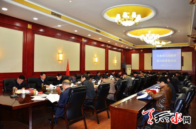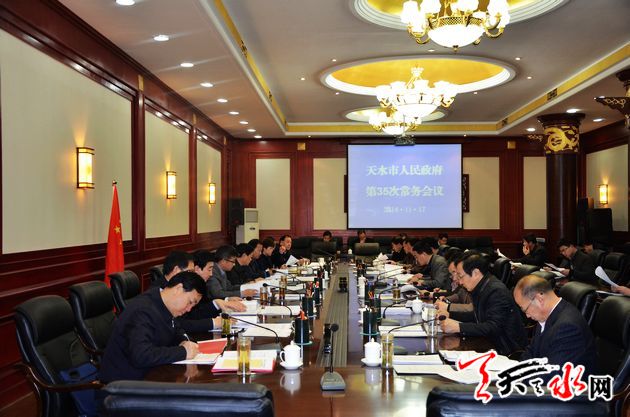 会议审议了《天水市实施战略性新兴产业发展总体攻坚战工作方案》、《天水市市场主体住所经营场所登记管理办法(草案)》、《天水市道路交通事故应急预案》和关于贯彻落实促进进出口稳增长调结构有关政策、深化流通体制改革加快流通产业发展、加快电子商务产业发展、老工业区整体调整改造、加快推进气象现代化等方面的意见和方案,听取了关于取消调整和下放行政审批事项、市一中麦积校区筹建工作、对有效期满的《天水市城镇职工基本医疗保险办法》和《天水市城市绿化管理办法》评估清理等情况的汇报,研究了不动产统一登记等有关事宜。