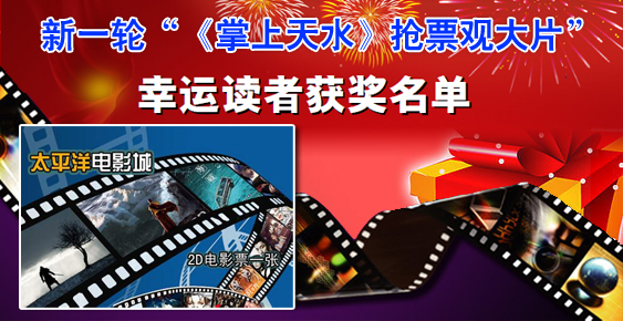 这20位幸运读者将获得由天水太平洋电影城提供的2D观影券。请幸运读者于11月20日之前,在天水日报社三楼《天水手机报》编辑部领取观影券,逾期不取者视为弃权。