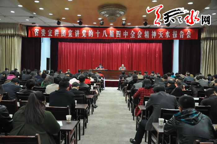 天天天水网讯【记者 王晓馨】根据省委统一安排部署,11月19日,省委宣讲团莅临我市宣讲党的十八届四中全会精神。