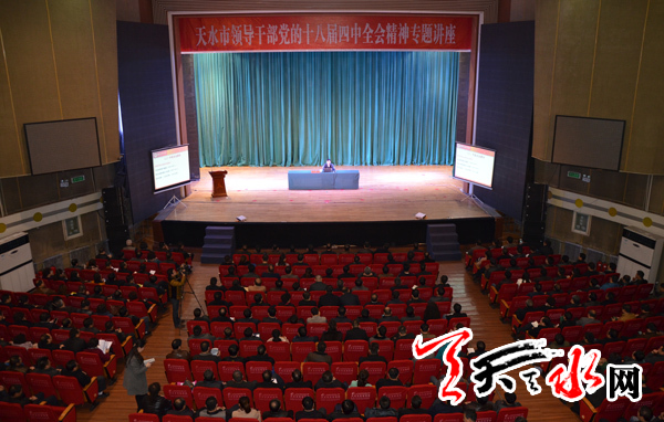 天天天水网讯【记者 王晓馨】 11月24日上午,全市领导干部党的十八届四中全会精神专题讲座在秦州大剧院举行。讲座邀请国家行政学院政府法治咨询研究中心主任杨伟东作专题辅导。