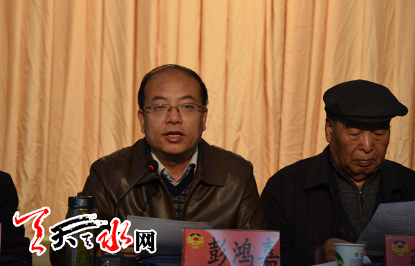 彭鸿嘉代表市四大组织对会议的召开表示祝贺,对各位诗友表示问候。他指出,三十年来,广大诗作者运用诗词这种高雅的艺术,讴歌天水秀美山川和改革开放取得的辉煌成就,为推介天水、宣传天水、让天水诗词走出甘肃、走向全国作出了应有贡献。彭鸿嘉强调,市诗词学会全体会员要认真学习贯彻习近平总书记在文艺工作座谈会上的重要讲话精神,正确把握诗词创作方向,繁荣诗词创作,从生活中汲取养料,歌颂当今时代和我市社会发展、经济建设的巨大变化,努力创作出更多无愧于时代的诗词精品。要加大与省内外诗词团体的联络沟通,互相借鉴和学习,通过诗词交流,加深彼此的友谊,让天水诗词在推介宣传天水中发挥积极作用。要加强团结,互相支持和帮助,不断凝聚正能量,促进天水诗词事业大发展大繁荣。