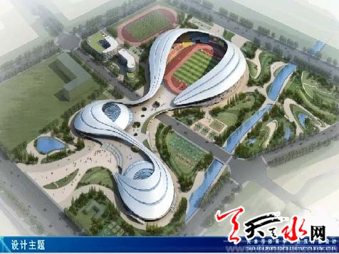 天水市体育中心建设项目选址位于麦积区廿里铺,东邻罗家沟,北邻天北高速,南邻羲皇大道,西邻羲通公交麦积总站,规划总面积436亩。建设内容为“一场两馆一校一公园”,即2万座体育场、5千座体育馆、1.5千座游泳馆、500名学生规模体育运动学校以及全民健身主题公园、地下停车场、运动员公寓。项目按照高起点、高标准的要求设计,建成后不仅为展示天水体育文化提供最佳平台,而且将成为提升天水城市公共服务功能,体现天水城市发展的标志性建筑。