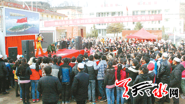 天天天水网讯 为弘扬中华民族传统美德,积极营造张家川县简朴、文明的婚庆氛围,张家川县日前组织文艺志愿者,深入张家川县胡川乡开展了“反对大操大办,节俭办婚庆”送文化下乡宣传活动。