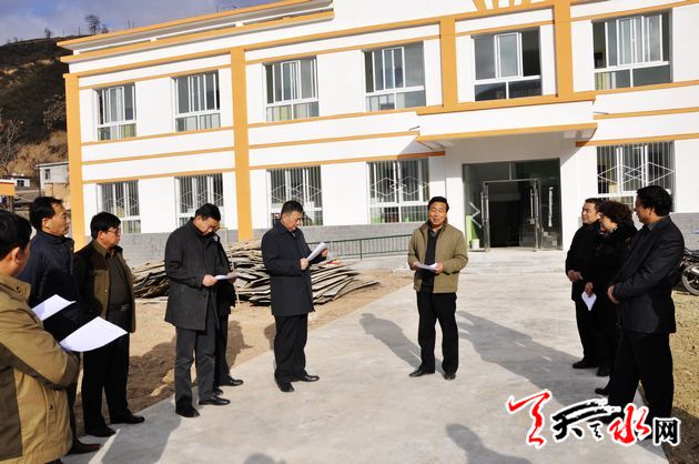 天天天水网讯【记者 赵晓玲】 12月2日,市委常委、统战部长蒲军带领18位捐建企业家,深入灾后重建项目秦州区皂郊镇新庄光彩小学督查项目建设进展情况。