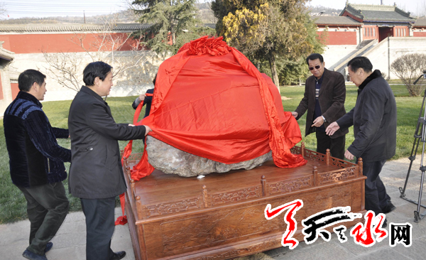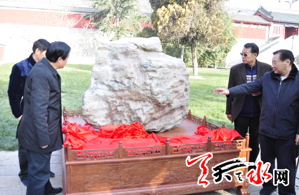 天天天水网讯【记者 赵晓玲】 12月8日,甘肃众晶鑫矿业集团为天水伏羲庙捐献了一块高约1米、宽约1.5米、重约2吨的福建华安玉景观石,捐献安放仪式当日上午在伏羲庙举行。