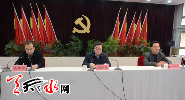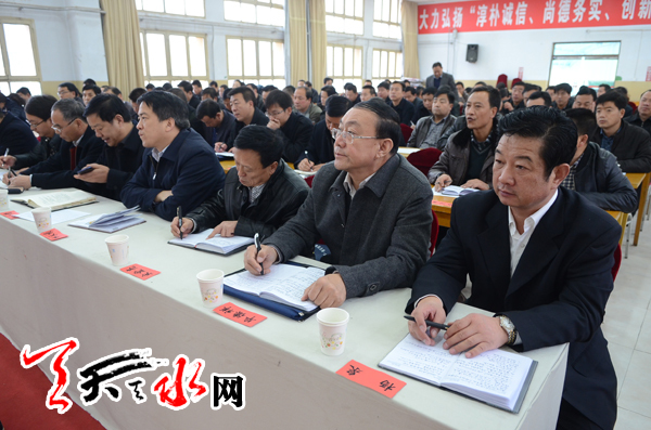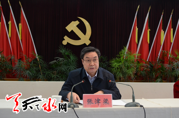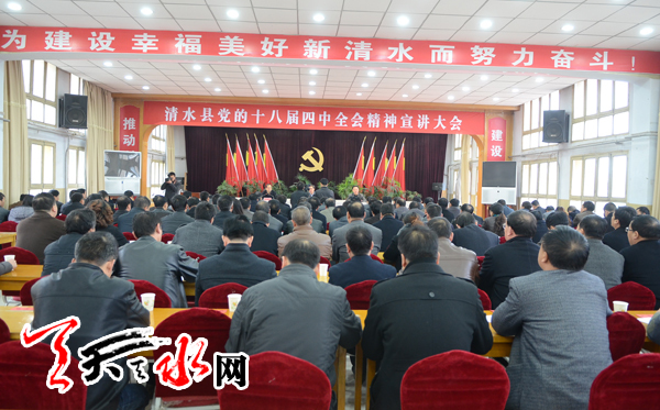 天天天水网讯【记者 杨璟】 近日,甘肃省政协党组副书记、副主席张津梁赴清水县宣讲党的十八届四中全会精神,就全面推进法治建设有关问题向清水县部分党员干部作了辅导报告。