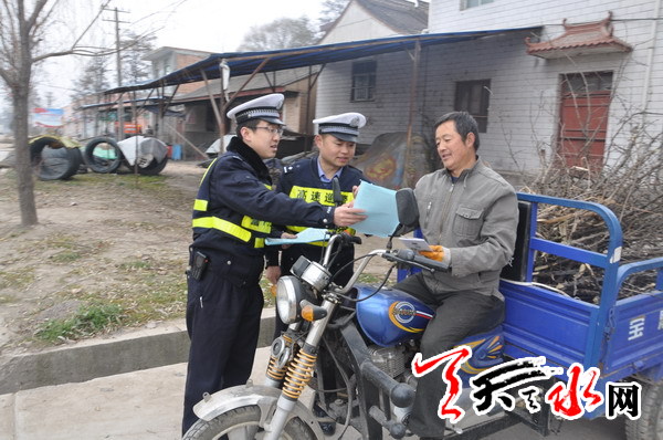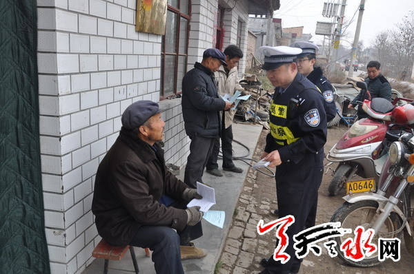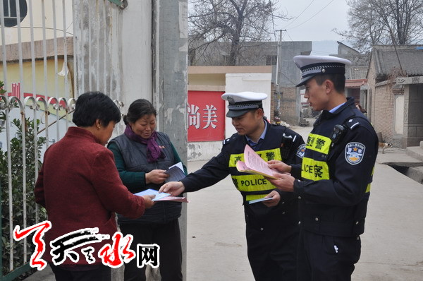天天天水网【通讯员 任明 王旭】为了深入开展“文明交通行动计划”,全力预防和减少道路交通事故的发生,确保秋冬季道路交通安全,12月14日高速公路第四支队玉泉大队以“五进”宣传活动为契机,以提高农村广大交通参与者交通安全意识为落脚点,结合近期发生的道路交通事故案例,深入辖区公路沿线村镇,向广大村民开展冬季事故预防及交通安全出行宣传活动。