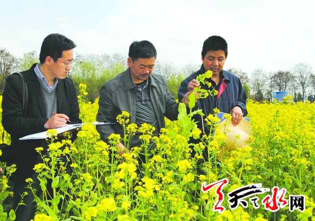 雷建明的办公室陈设整洁简朴,墙边的书柜里满满当当装着国内外有关育种的书籍和资料;办公桌上,井井有条地摆放着一摞摞笔记本、书籍。眼前的雷建明,衣着朴素,声音低缓,话语朴实简洁,是一位不善言辞的普通中年人。然而,就是这样一个“普通人”,曾在上世纪90年代选育出油菜品种“天油一号”,填补了天水没有自育油菜品种的空白,改变了当时天水油菜育种工作处于停滞的尴尬局面,并组建了天水市油菜工程技术研究中心。目前,由他带头选育出的天油系列冬油菜新品种(系),覆盖甘肃陇东南及中部地区,累计示范推广种植1000多万亩,每年推广油菜种子在20万斤以上。并在陕西、山西、宁夏、河北等省区大面积示范种植,年推广种植面积达300多万亩,年新增社会效益约1.5亿元。