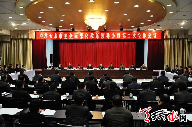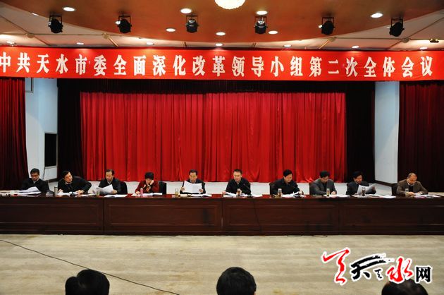 天天天水网讯【记者 胡丽霞】 12月17日,天水市委全面深化改革领导小组召开第二次全体会议,学习贯彻中央和省委全面深化改革领导小组会议精神,对我市全面深化改革工作进行研究部署。市委书记、市委全面深化改革领导小组组长王锐主持会议并强调,全市各级各部门要认真贯彻党的十八届三中、四中全会和中央、省委全面深化改革领导小组会议精神,切实把全面深化改革摆在重要位置来抓,坚持问题导向,聚焦聚神聚力,务求各领域改革取得实质性进展。