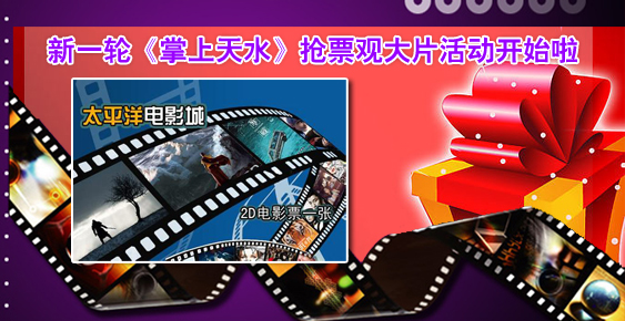 天天天水网讯(记者 黄虹)由天水日报手机客户端《掌上天水》和天水太平洋电影城联手推出的“《掌上天水》抢影票观大片”活动开始啦!