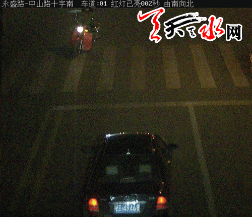 (12月15日19时37分,在清水县永盛路—中山路交叉路口,甘E49468违反道路交通信号灯(闯红灯),依据《道路交通安全法》第90条、《甘肃省道路交通安全条例》第82条第3项之规定处200元罚款、记6分。)
