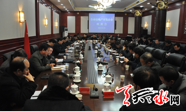 天天天水网讯【记者 杨璟】 12月19日下午,天水市人民政府召开全市房地产开发企业座谈会,听取部分房地产企业负责人对房地产业发展的意见建议,探讨促进全市房地产业健康发展的措施和办法。中共天水市委副书记、市长杨维俊强调,要立足实际,坚定信心,优化环境,破解难题,努力推动全市房地产市场平稳健康发展。