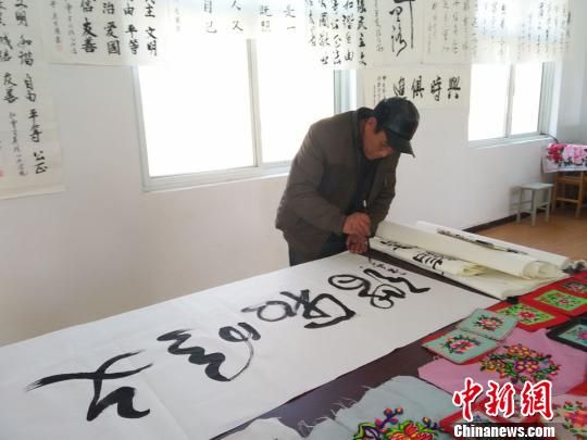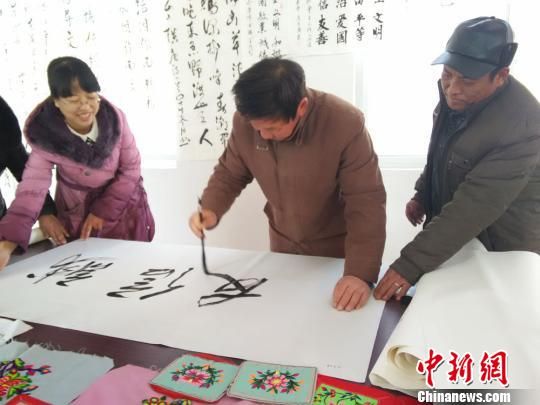近日,天气渐冷,甘肃清水县柳林村村民在农闲之时来到村上的文化站练习书法。 刘华 摄