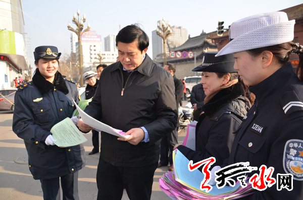 天天天水网讯【见习记者 冯丽娟】12月18日,中共天水市委常委、政法委书记赵卫东带领市公安、运管、工商、教育、规划、建设、两区政府等部门负责人先后到秦州、麦积两区部分主城区道路口、火车站以及城区内易堵的交通节点,督查综合整治道路交通秩序开展情况。