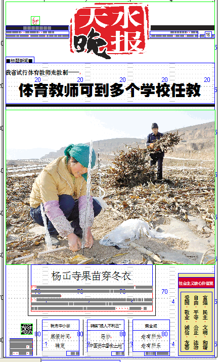 改版后,《天水晚报》从周一至周六每天推出16个版,我们对原有版面及内容进行了更合理的增减和融合,保留读者喜爱的“热线”、“社会”等本地新闻内容,增加扩展了“重要”、“关注”等新版块,力求通过更加深度、全面、及时的新闻视角,报道老百姓最感兴趣的身边事。在此基础上,我们还将原有的周刊进行了重新整合构建,重点拓展了周刊信息的覆盖面,进一步提高了其服务性、可读性和参考性。除了内容,在形式上我们对板式也进行了全新设计,方便您阅读的同时更让您享受阅读。