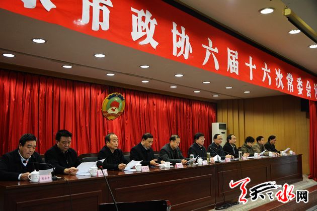 天天天水网讯【记者 吕薇】 12月30日下午,天水市政协召开六届十六次常委会。市委副书记、市政协主席宋尚有主持会议并强调,市政协常委会组成人员要认真贯彻落实中共十八大和党的十八届三中、四中全会及习近平总书记系列讲话精神,以全面深化改革为动力,积极有效地履行政治协商、民主监督、参政议政职能,为推动天水经济社会转型跨越发展作出新的贡献。