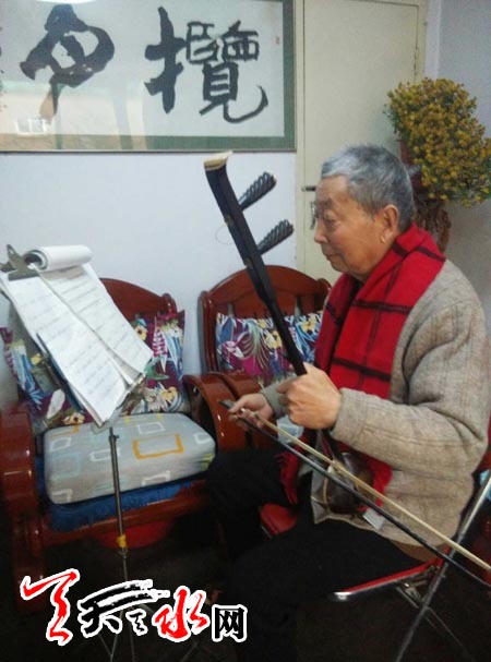 李贵堂是天水秦剧团的首席板胡演奏师。大家都知道,秦腔音乐全凭着板胡提音。板胡音色明亮、高亢清脆,适用于表现秦腔奔放粗犷的豪迈之情,所以它是秦腔主要的伴奏乐器。
