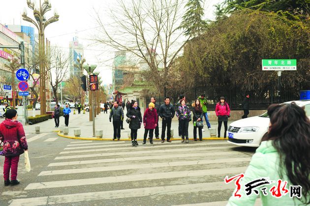 2015年1月3日中午,天水市商业大厦门前的马路上依旧车水马龙、人潮涌动。尽管执勤交警忙地不亦乐乎,但斑马线上的情景与往常仍旧没有多大区别:行人主要看车行速度和密度而过马路,如果车速较慢、车辆较少,行人就赶紧穿过斑马线,反之就等;如果行人较少,车辆也不会主动刹车让行人先过斑马线。