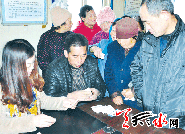 合作社工作人员在给村民们结算一年的工钱