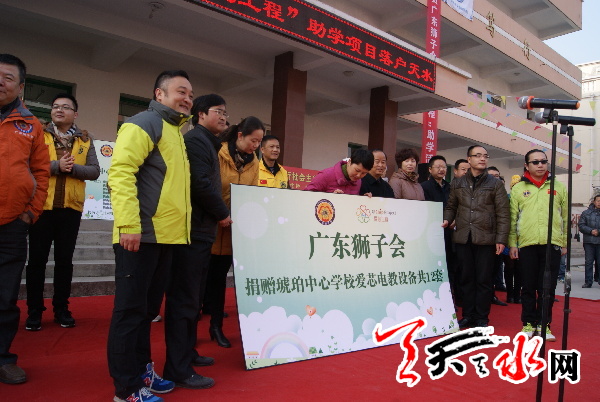 天天天水网讯【记者 罗双红】 1月14日,广东狮子会向麦积区琥珀中心学校捐助了价值37万元的电教设备。