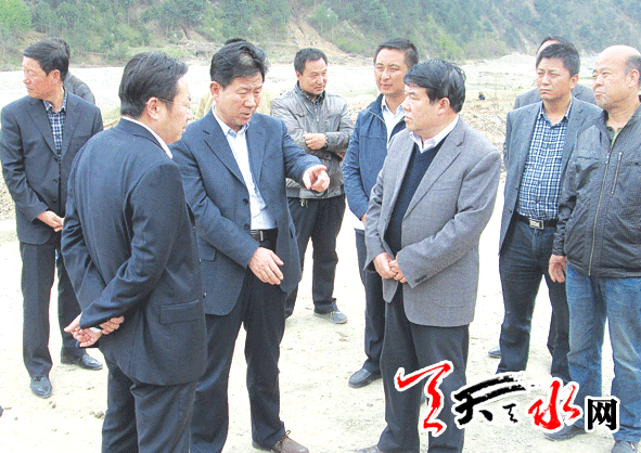 ▲市领导张明泰、区长何东调研指导区地质灾害项目建设工作。