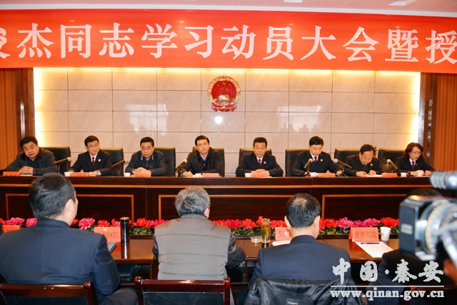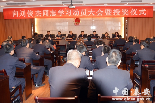 每日甘肃网讯 据天天天水网报道 1月12日,秦安县检察院刘俊杰同志荣获最高人民检察院“一等功”荣誉称号授奖仪式暨天水市委政法委关于全市政法系统《向刘俊杰同志学习的决定》动员大会在县检察院召开。