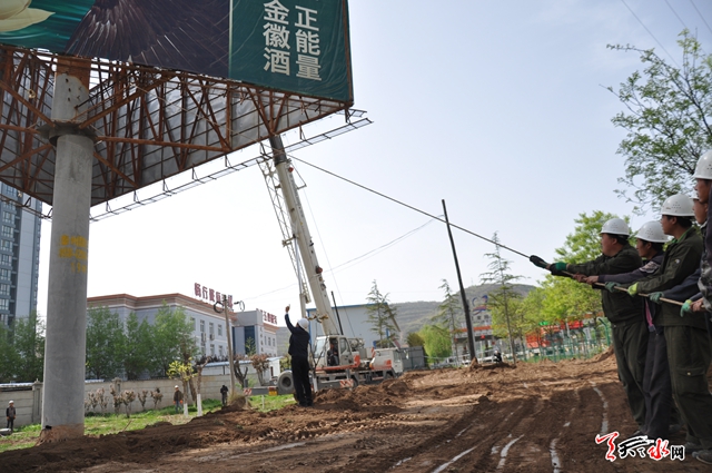 天天天水网讯 【记者 刘晓亚】4月20日,为了有效遏制违法建设高发的势头,按照市委、市政府的安排部署和《关于开展违法建设专项整治行动通告》的要求,天水市建设局(综合执法局)、甘肃省交警总队和省高速公路管理局等单位联合对天宝高速公路天水西收费站附近的8块立柱式广告牌进行了拆除。