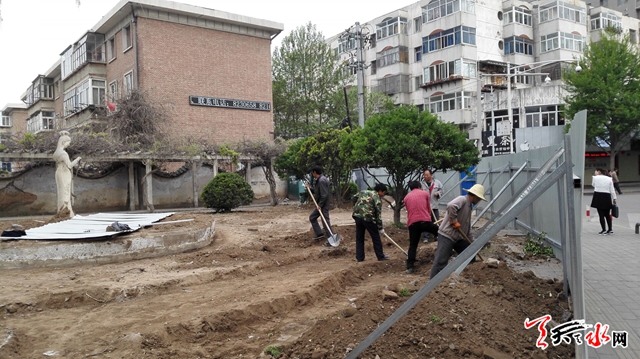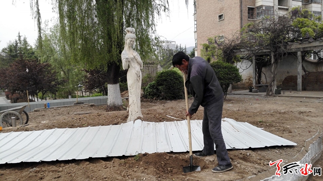 天天天水网21日16时讯 【记者 杨晓斌】4月21日,记者经过市人民公园时看到,市人民公园改造工程的施工工人正在忙碌着。在苏慧文化园内,苏慧雕像由原来地势比较低的水池内被提升至地面以上。