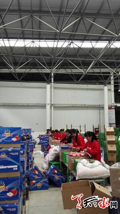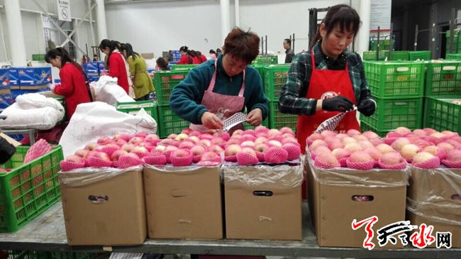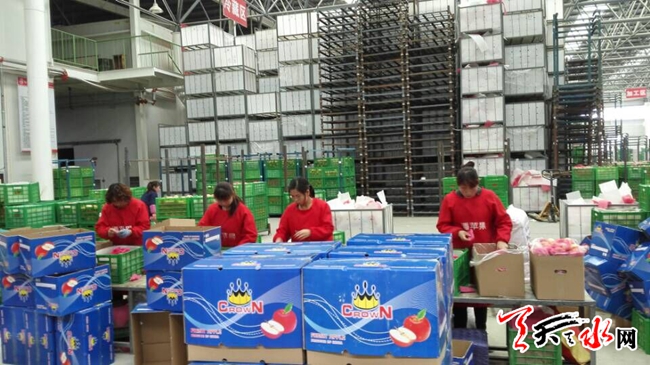 天天天水网21日17时讯 【记者 姬旺芳】4月21日,工人正在天水花牛苹果产业园包装苹果。
