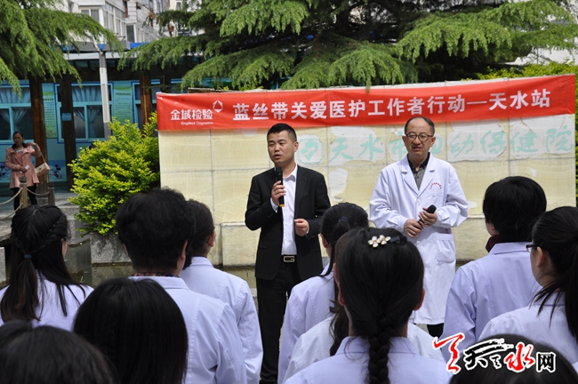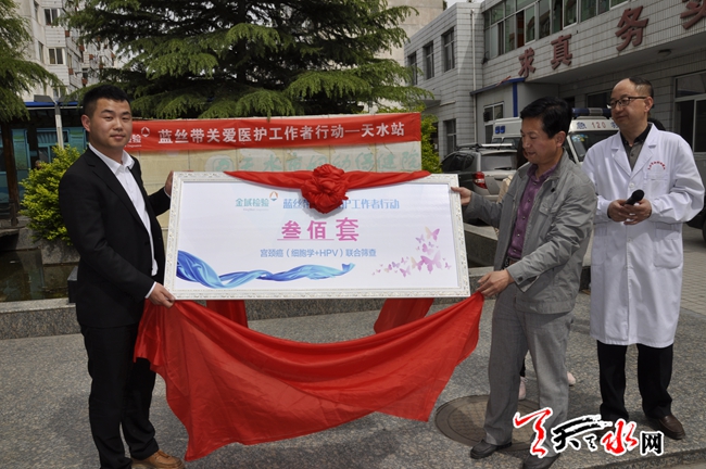 天天天水网21日18时讯 【记者 赵晓玲】4月21日下午,金域检验与天水市妇幼保健院协力合作的“蓝丝带关爱医护工作者”活动在市妇幼保健院启动,活动中,并现场赠送300套(TCT+HPV)医疗设备,金域检验的健康关爱传递给天水老百姓。