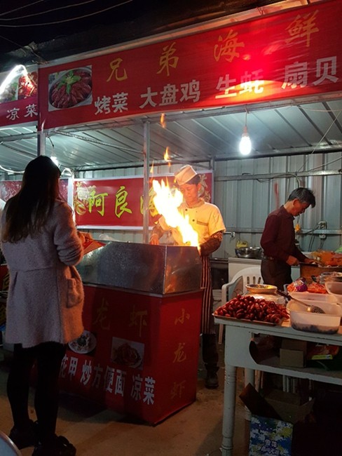 天天天水网21日20时讯【记者 常亮】4月21日晚,在新建成的岷山厂拆迁夜市内记者看到,不少摊位都是以小炒饮食为主,摊主在炒菜时火苗蹿起两三米高,而在每个摊位的的顶部悬挂着用塑料篷布制作的招牌,而蹿起的火苗基本和招牌一样高。在夜市场地的上空均为遮阳网,一旦发生火灾后果将不堪设想,希望在此的商家及夜市管理部门能够及时整改,以防不必要的意外发生。