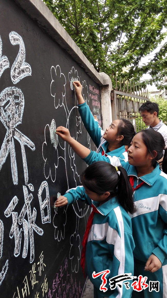 据了解,本次宣传活动以“节约集约利用资源,倡导绿色简约生活;携手同心善待地球,爱护美好家园环境”为主题。征集了秦州区回民小学的小朋友们精心绘画的200多幅爱护地球的图画作品,在秦州区砚房背后巷道制作了一堵环保知识大画廊展览墙供辖区居民和学生展览。