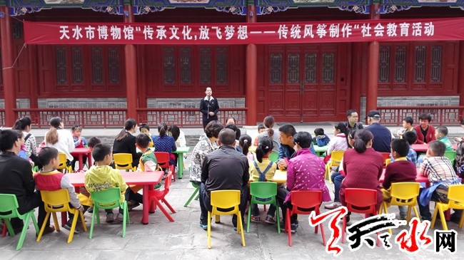 天天天水网24日11时讯 (记者 邵兰霞)4月24日上午10时,市博物馆在伏羲庙博物馆临展厅门前,举行‘’传承文化,放飞梦想一传统风筝制作‘’亲子活动,让孩子了解古代风筝的由来和制作工艺,亲手体验风筝的制作过程,在互动中分享知识,体验传统艺的魅力。