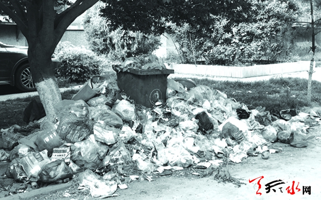 麦积区道北天乐苑的张女士告诉记者,他们小区有垃圾道,每个单元门口也配有垃圾桶,可最近十多天垃圾没有清理,楼下的垃圾桶周围都堆满了垃圾,小区的卫生状况还没这么差过。