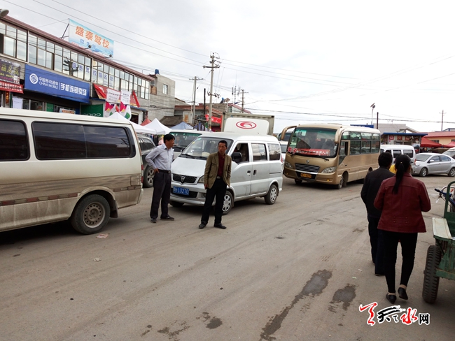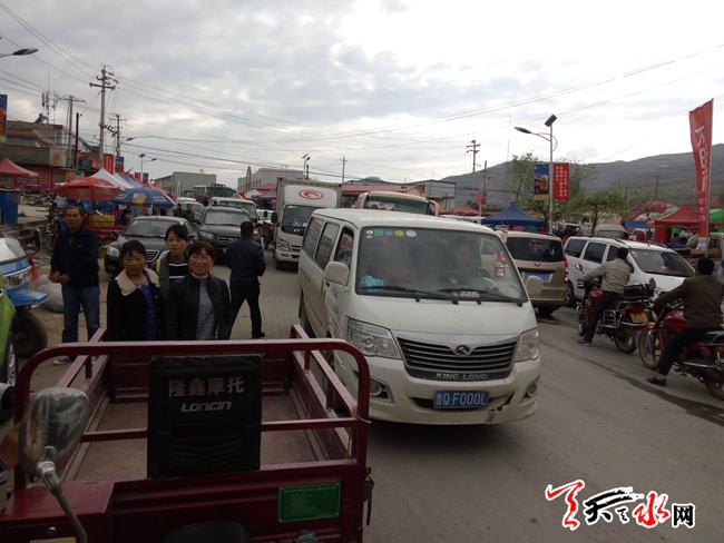 天天天水网25日16时讯 记者【景春燕 何慧娟 】 4月25日下午16点40,秦州区藉口镇街上的丁字路口堵车,现场堵了近百辆车。