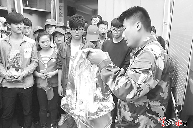 4月21日是消防支队天水郡中队消防队站开放日,当日来自天水师范学院的学生走进该中队,参观了消防车及各类消防设备。中队官兵用通俗易懂的语言给学生们讲授了如何预防火灾发生、如何应对初期火灾、如何进行火场自救等消防知识。(天水日报记者 胡丽霞 摄)