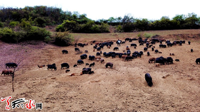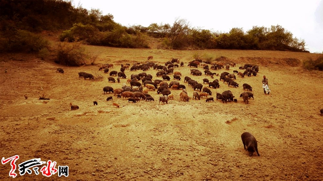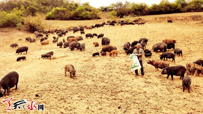 在一声声吆喝声中,手拎食品袋的陈刚犹如手握磁性棒的教官,满山遍野成群的野猪闻声撒着欢嗷叫着向他的“指挥官”飞奔而来,这些健硕如飞的野猪群形成壮观的景象。