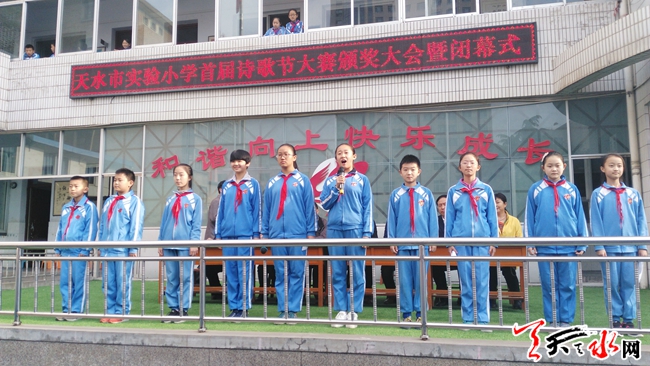 4月26日上午,历时1个月的天水市实验小学首届诗歌节大赛闭幕。诗歌节期间,600多名学生用他们纯真的文字抚摸诗歌、走近诗歌,创作了1100余首诗歌,涌现出了一批具有潜力的小诗人。据了解,天水市实验小学举办首届诗歌节,旨在弘扬诗教传统,传承诗教文化,以诗育人,绽放童心。此次诗歌节的举办,为天水文化大市建设添上了清新的一笔。(天水日报记者 胡晓宜 摄)