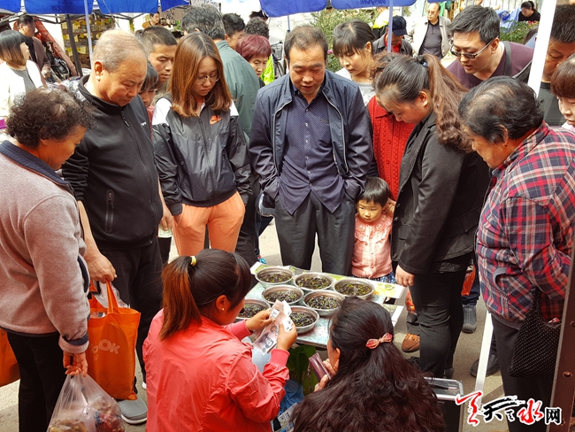 天天天水网27日12时讯【记者 常亮】4月27日中午,记者在秦州区花鸟鱼虫市场内看到,在一处观赏荷花籽的销售摊位前围满了前来购买的市民。